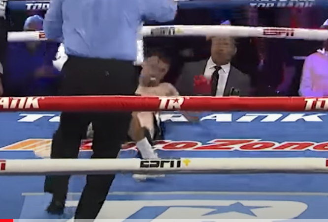 2、相手の頭がロープにバウンド