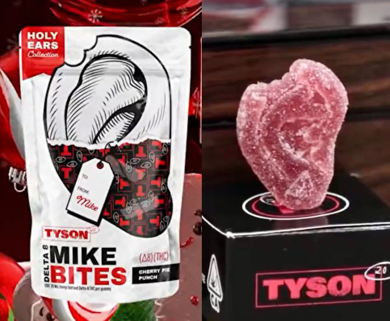 今回発売の”かじられ耳”グミのパッケージ(左)と、以前発売された同シリーズの耳グミ(右)@miketyson より