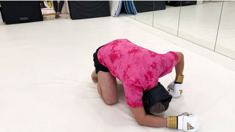 悶絶するこめお(YouTube「KAI Channel / 朝倉海」より)