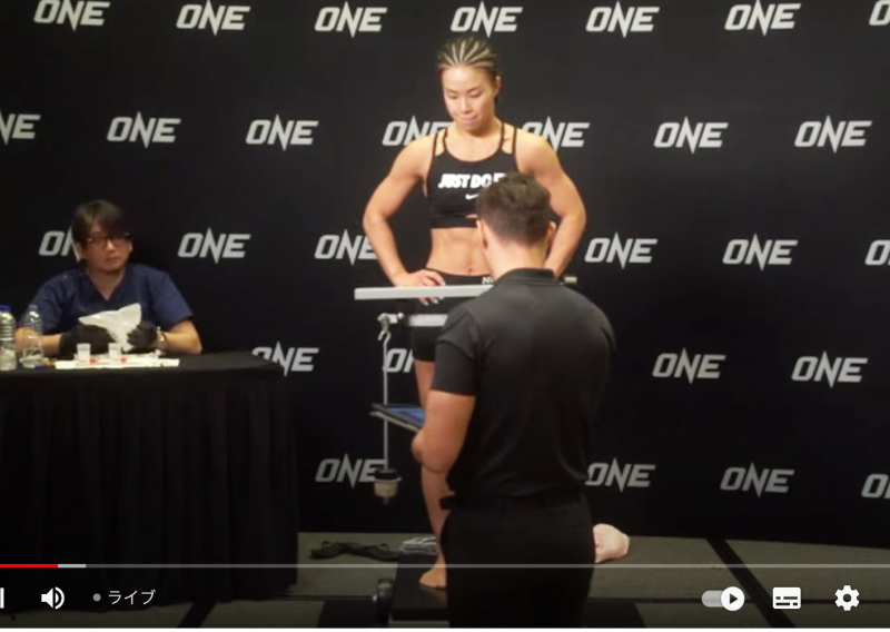 1回目の計量、一方のハムは計量一発パス(ONE公式YouTubeより)