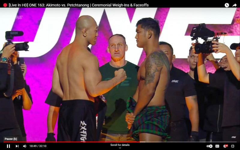 岡見(左)とンサンのフェイスオフ(ONE公式YouTubeより)