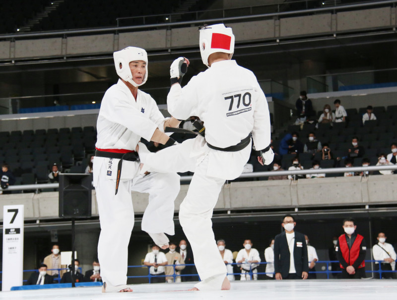 蹴りで攻める尾形(右)
