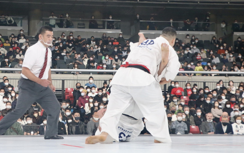 準決勝で西村が大秦に下段突きで技ありを奪った瞬間