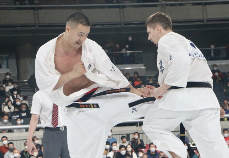 西村(左)がライバル・コバレンコ(右)を倒し二連覇