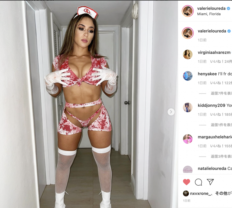 ハロウィンで披露したギリギリビキニのナースコスプレ(21年11月)@valerieloureda