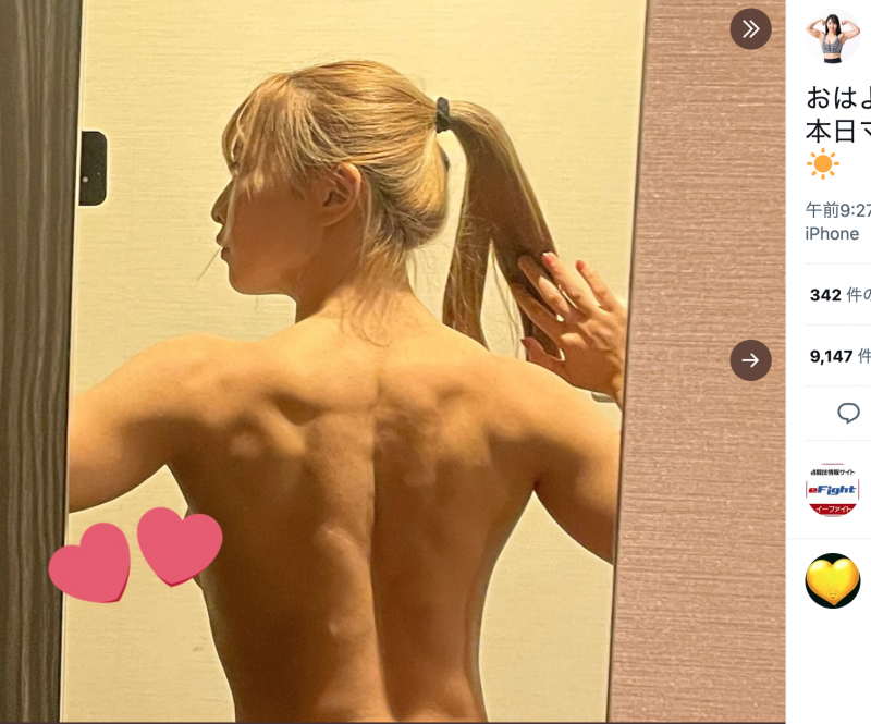 大会当日、マッスルゲート北陸に出場すると告げた投稿、バキバキの背中の筋肉だ(ちゃんよた Twitterより)