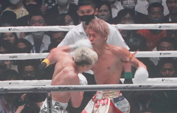1、武尊戦、身体を倒しながらクロスの左がヒット