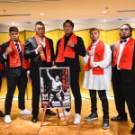会見に出席した(左から)宇佐美、イゴール、小川、シビサイ、木村、関根