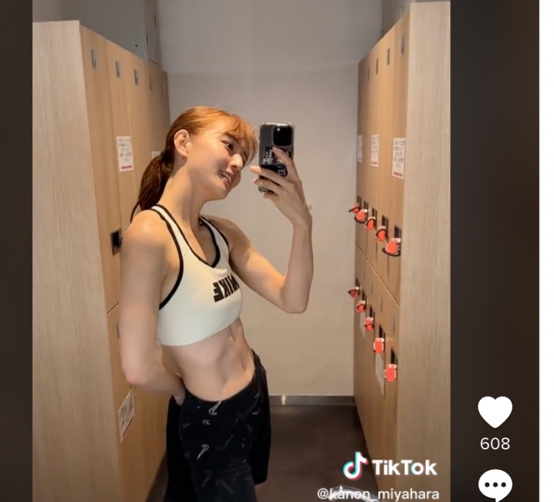 自身のTikTokで割れてきた腹筋をアピールした(tiktok.com/@kanon_miyaharaより)