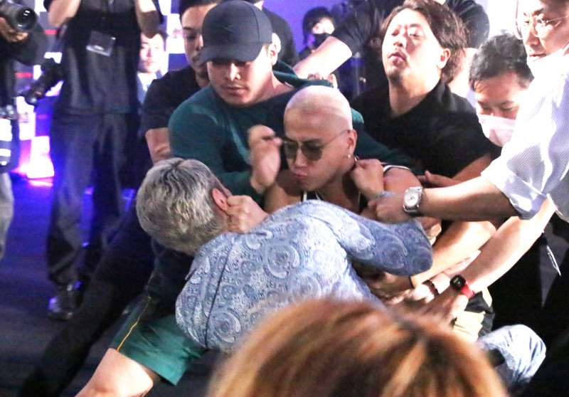 4、周りが止めるも、こめおが前に出る勢いで、高垣がバランスを崩し下になる(10月)