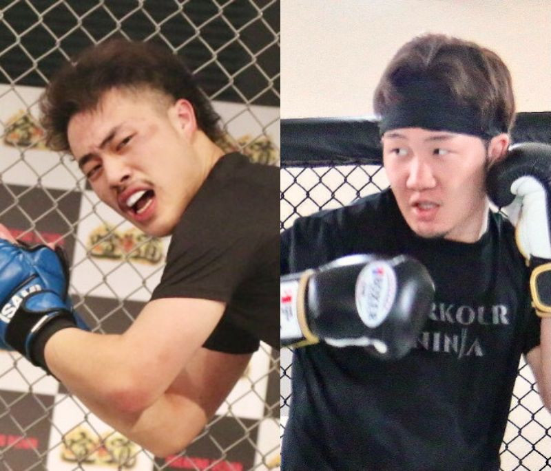 ”最弱”10人ニキ(左)が朝倉未来の特訓を受ける