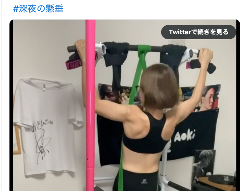 あきぴはスポブラで懸垂する姿を毎日配信(@rizingirlakipi)