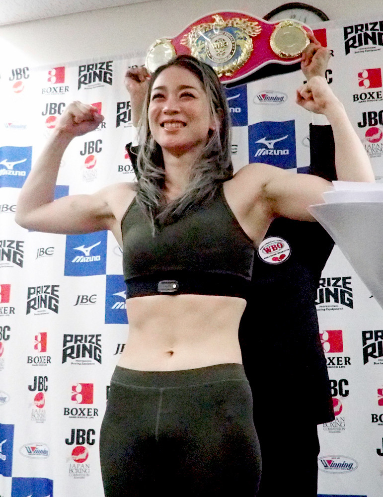 藤原茜が計量パスでマッスルポーズ