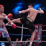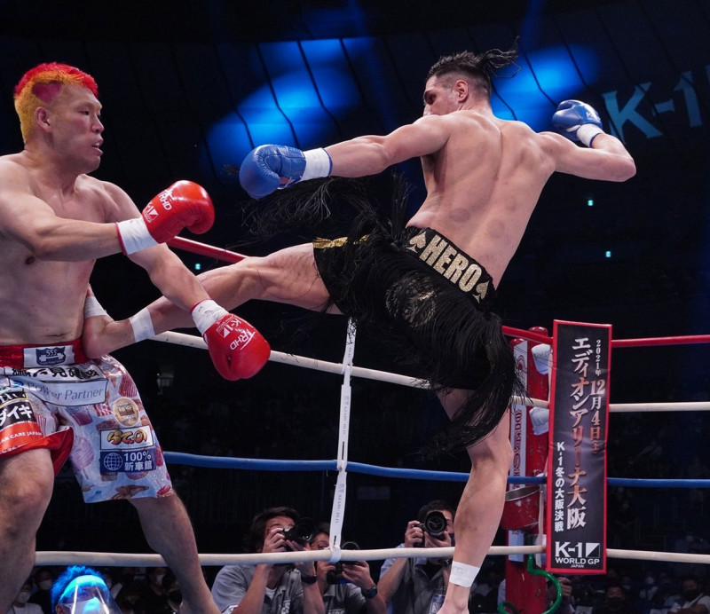 ダイナミックな蹴り技を見せるカリミアン(2021年9月)