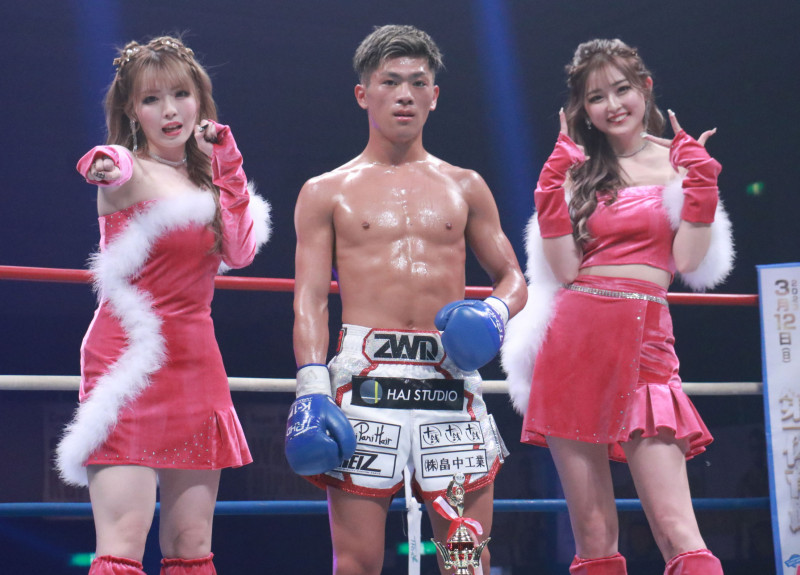 勝者・斗麗(中央)と、ゆうちゃみ(右)・ゆいちゃみ(左)姉妹が記念撮影