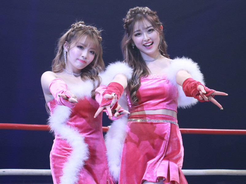 K-1ラウンドガールを務めた、ゆうちゃみ(右)・ゆいちゃみ(左)姉妹