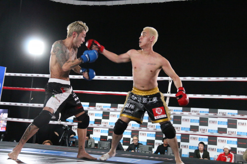 こめお(右)は、黒石高大戦の敗北から立ち直り、アウトサイダーの高垣勇二(左)を下した
