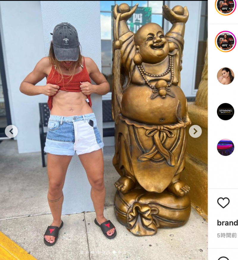布袋様の隣で美腹筋を披露@amandaufcribasより