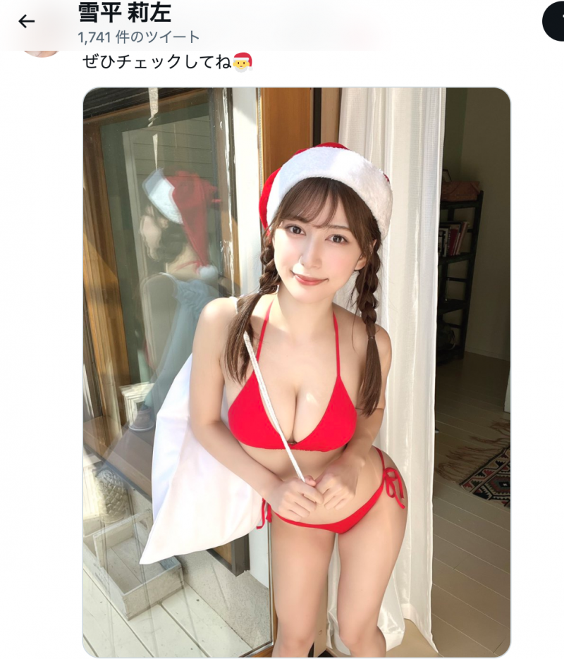 サンタ風の赤ビキニで漫画アクションに登場した雪平(雪平のインスタより)
