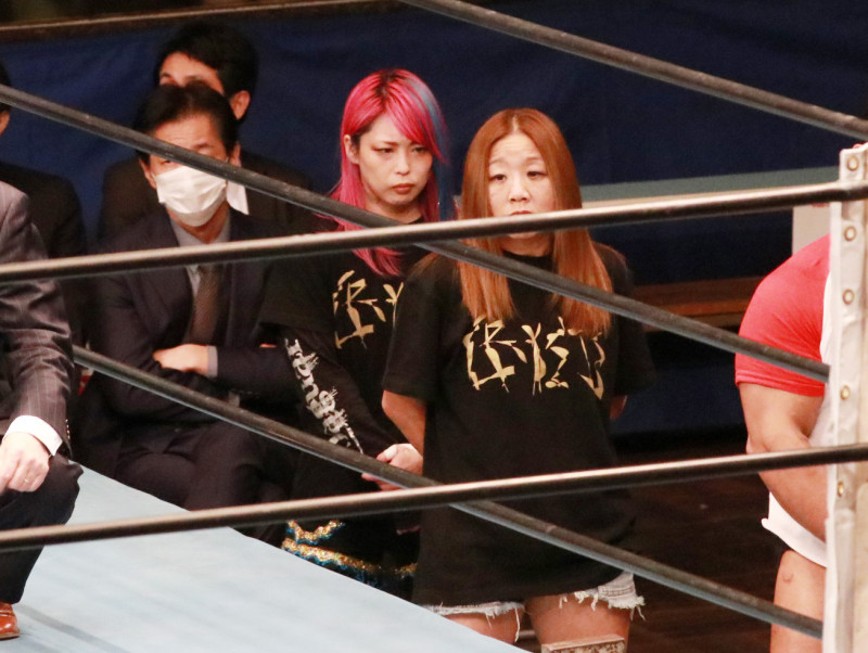 リングサイドには本日参戦した女子のマドレーヌや薮下めぐみらが並ぶ