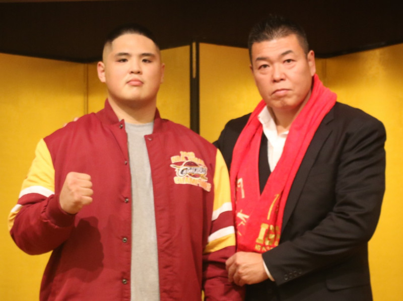 小川(右)と並ぶ貴賢神