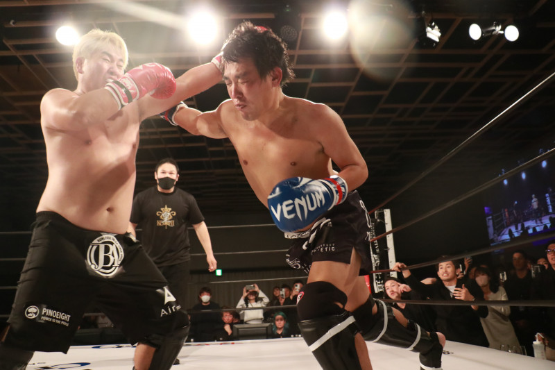 箕輪がフックで反撃