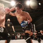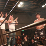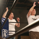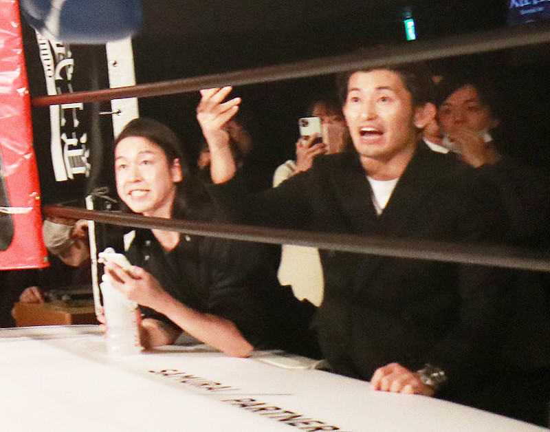 才賀紀左衛門(右)が入江のセコンドで声援を送る