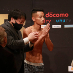 武井は1回目の計量で50gオーバーだったため、パンツを脱いで計量