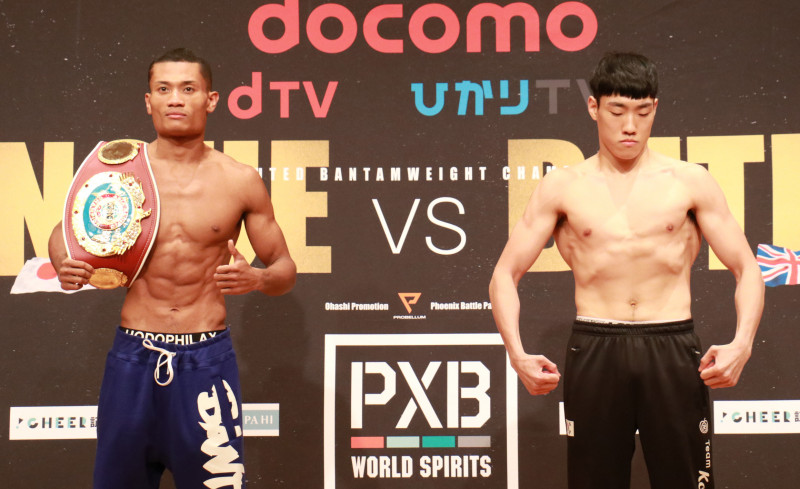平岡アンディと対するミンホ(右)は常にマッスルポーズ