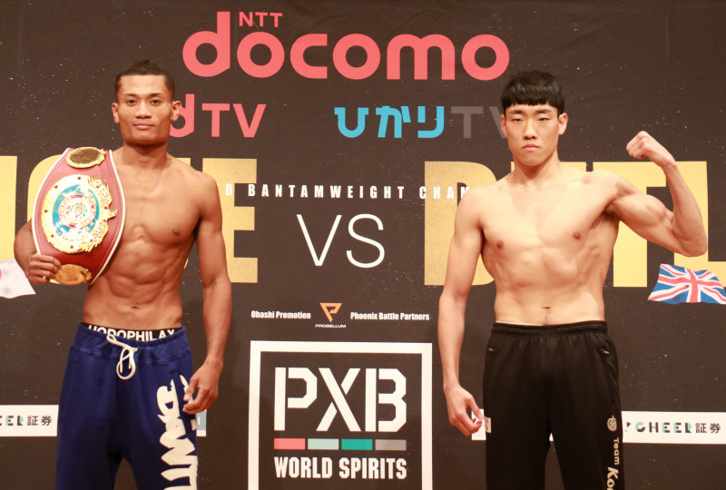 平岡アンディと対するミンホ(右)は常にマッスルポーズ