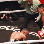 左まぶたをカットしながらも強烈なパンチで攻めた武居