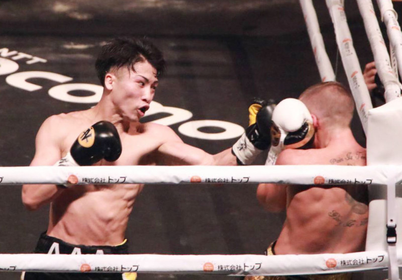 井上が強烈なパンチをヒットさせる