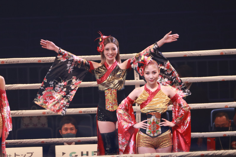 ラウンドガール サイバージャパンダンサーズ(左からRIONA、RINA)