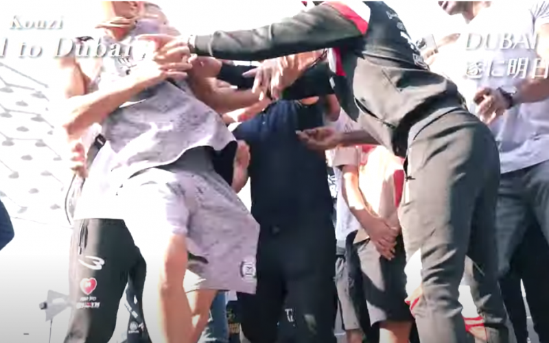 ドバイで対戦相手に突き飛ばされた皇治、反撃に行くところをセキュリティに止められた=皇治YouTubeより