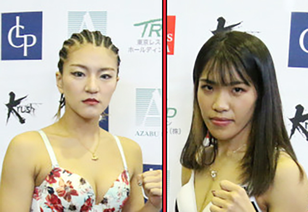 真優(左)がビキニで麻央は美腹筋を見せ計量パス