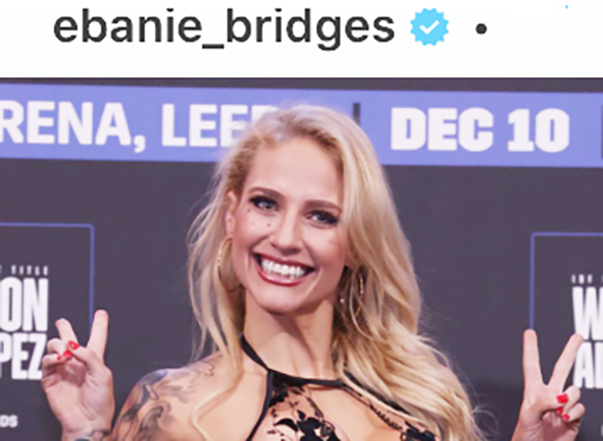 今回いつもに増して際どすぎるランジェリー姿で計量するブリッジス、KO防衛し手術成功を報告した(@ebanie_bridgesより