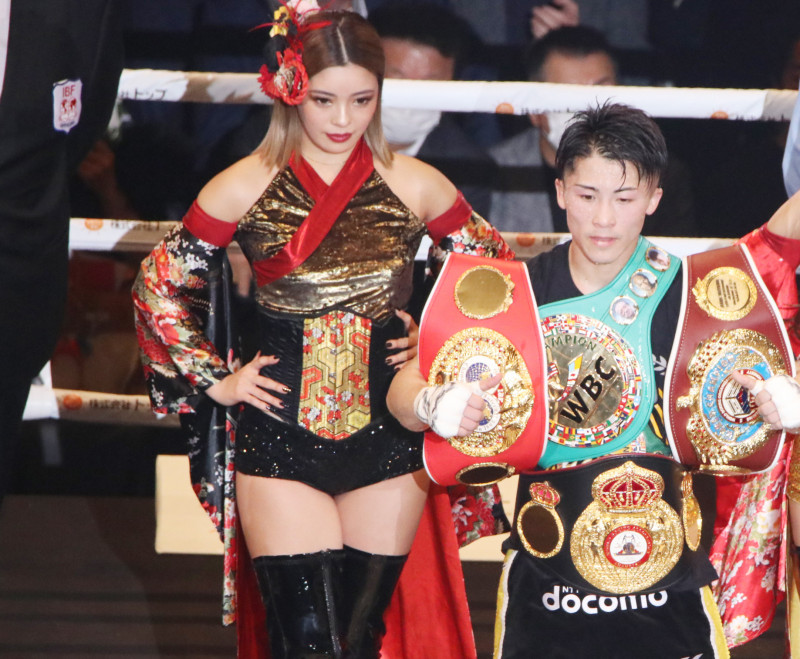 井上と記念写真に収まるRIONA