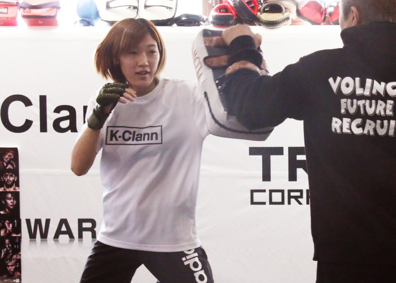 ミット打ちで快音を響かす伊澤
