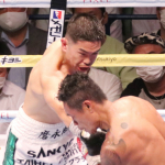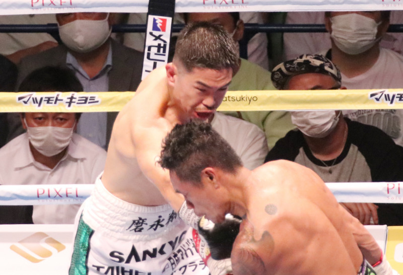 パンチを打ち込む井岡一翔(’22年7月)