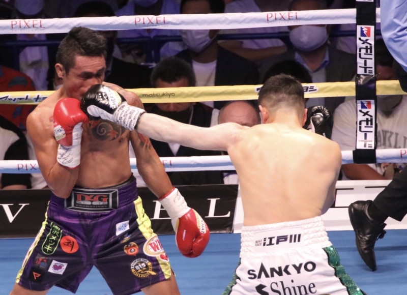 前戦、ニエテスに左ストレートを叩き込む(22年7月)