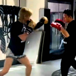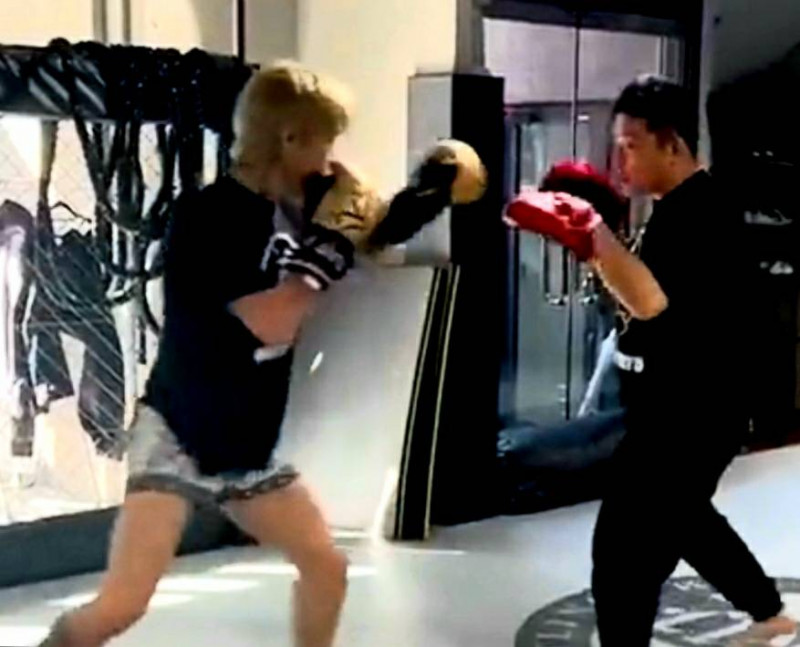 高速パンチでミット打ち練習をする平本(平本蓮Twitterより)