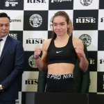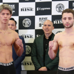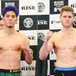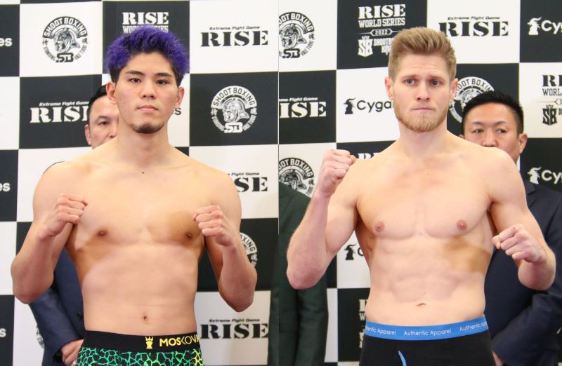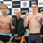 メインの原口(左)と元フェザー級王者アダムチャック(右)が計量パス