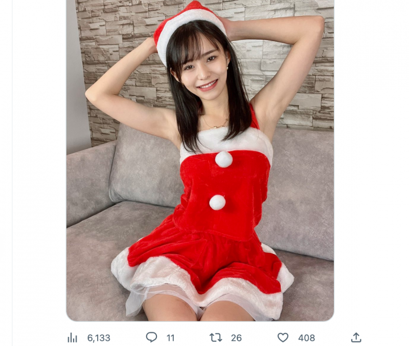 サンタ衣装のぽぽちゃん(ぽぽちゃんTwitterより)