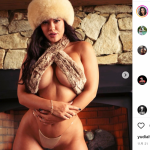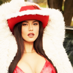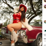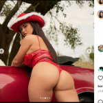 赤のクラシックカーの前でセクシーなサンタ姿@missamberfieldより