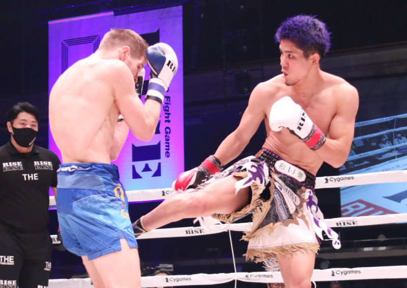 空手仕込みのローキックを叩き込む