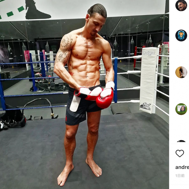 ボクシンググローブを着用、バキバキのシックスパック!@iamzlatanibrahimovicより