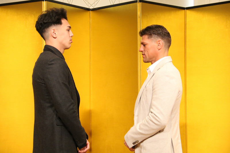 クラウス(右)と宇佐美(左)のフェイスオフ。宇佐美が頭ひとつ高い