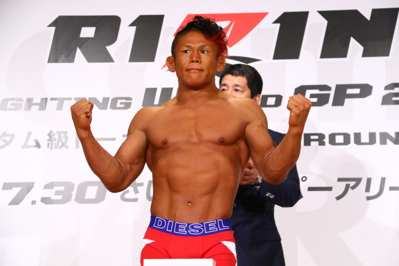 鍛えた身体で計量に挑む北岡悟(2017年7月)