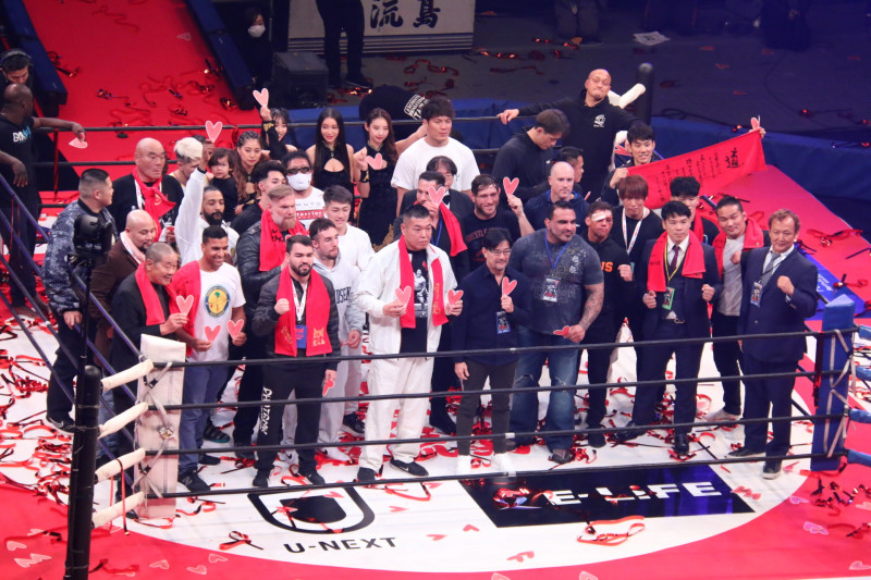 追悼式を終えて笑顔の面々