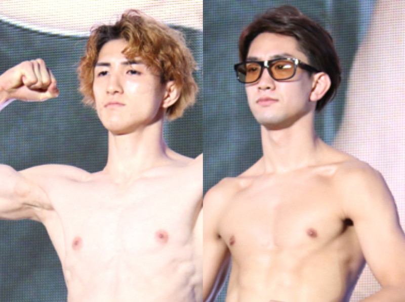 井上(左)と瀧澤(右)が肉体美で競い合う前哨戦